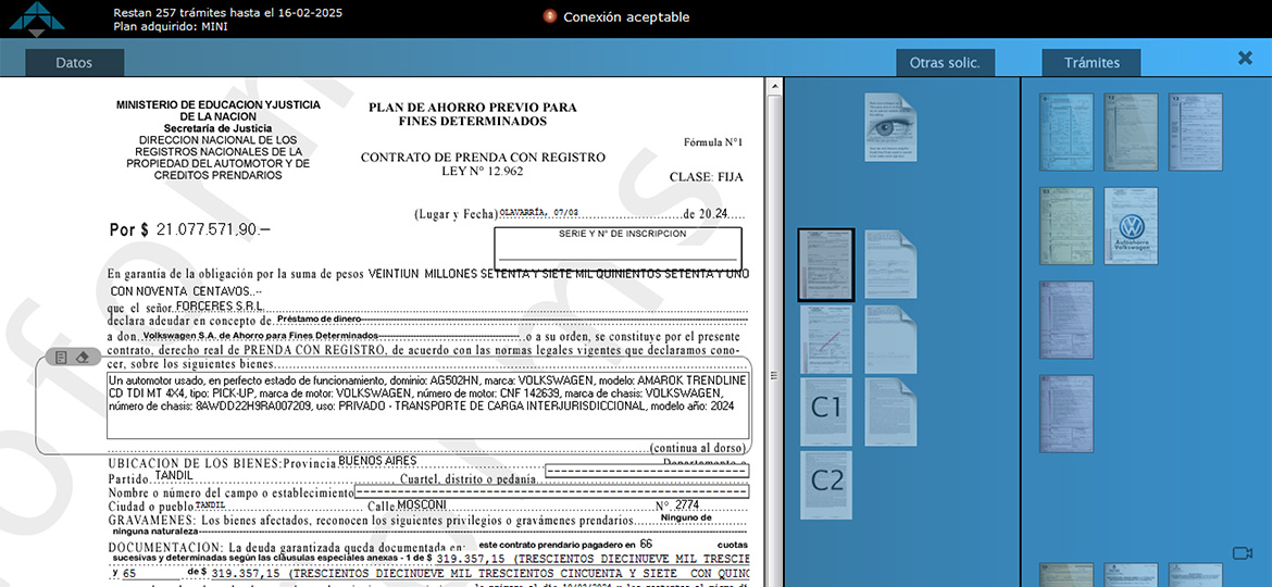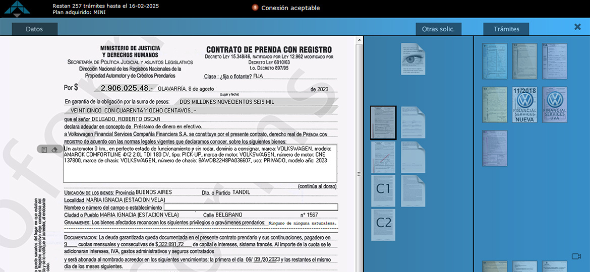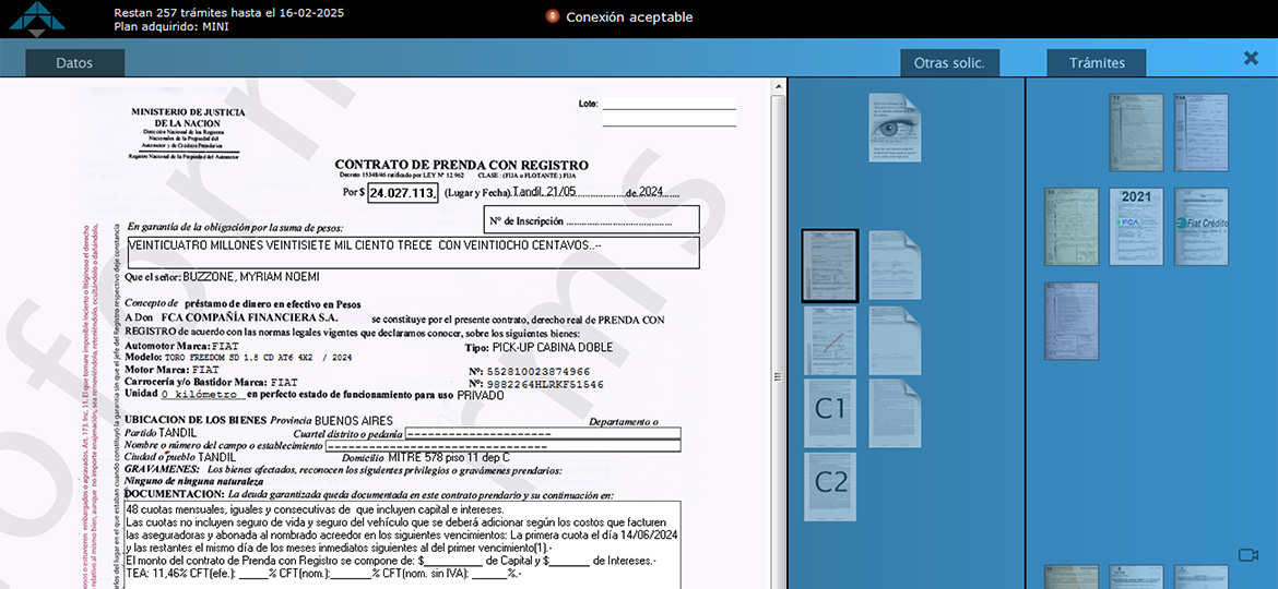 AUTOFORMS cuenta con 135 FORMULARIOS ELECTRÓNICOS, distrubuidos en 44 SOLICITUDES TIPO, 9 FORMULARIOS de libre impresión, 15 DD.JJ, 6 notas y 61 CONTRATOS PRENDARIOS, que incluyen todas las versiones de contratos de un determinado acreedor prendario, inclusive sus versiones UVA.